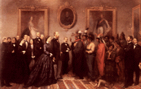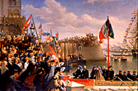 After an apparently favourable plebiscite in Mexico, the Archduke Ferdinand Maximilian accepted the imperial crown at Miramar on the 10th April,1864. Four days later he and his wife went on board the ship S.M.S. "Novara" to set sail for their new homeland as the Emperor and the Empress of Mexico.