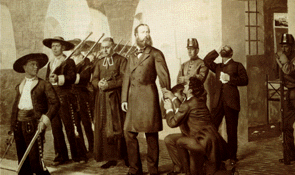 THE HILL OF THE BELLS On the 13th February, 1867, after the rejection by Juárez of a renewed offer of peace, the Emperor Maximilian left Mexico City with his "national" army for the town of Querétaro some 100 miles to the north. Here the Mexican Empire would make its stand. Unfortunately, the jealousies and rivalries between his generals greatly reduced the effectiveness of Maximilian's forces, and he and his troops were soon besieged in Querétaro by the advancing republican armies. On the 15th May Colonel López betrayed the town into the hands of the republicans. Maximilian and his loyal generals Miramón and Mejía were arraigned before a military tribunal and condemned to death.