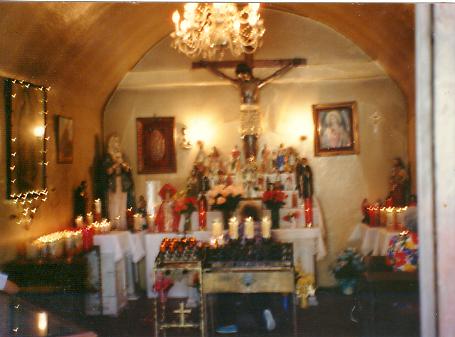 This Chapel of the Miracles, where people from all over the world come to pray and make contracts with the Almighty, known to the Family as "El Senor de Los Milagros", has been part of the Rodriguez Family since the late 1800's. The Chapel is part of the San Antonio landscape and came into public prom enounce with the rescue of a young man from the hangman's noose. The story is that a young man was condemned to die for some crime, circa 1920+. His Mother prayed and agreed to walk on her knees from San Fernando Cathedral to El Senor de Los Milagros (about 2 miles), if her son were pardoned. In a scene reminisced of a movie, her son was pardoned at the last minute. The streets were lined with people. People stepped from the sidewalks with rugs to place before this Mother of faith who crawled on her knees from San Fernando to the Chapel as she had promised. There is the story of a WWII pilot who contracted to come and pray once a year if he survived the war. His Aviator wings hang within the chapel to this day. He came each year as promised. There are many stories such as these as people of faith come to the chapel from all over the world. This Chapel was constructed in 1813. The story of its origin however goes back into time, in fact into Texas history as contents of the Mission Valero became part of this Chapel. The Mission Valero is better known as the Alamo. This story was told the author by 'Tillie' or Matilda Matta, the daughter of Carolina Cantu, the Daughter of Clemente Rodriguez and Candellaria Ximenes. Clemete Rodriguez is brother of Severo and the son of Jose Maria Rodriguez and Francisca Gonzales. Historical Background San Antonio de Valero, one of five Spanish missions established by Franciscans in what is now San Antonio, is most commonly known as the site of the battle of the Alamo (1836). The mission was started by Father Antonio de San Buenaventura y Olivares, of the College of Santa Cruz of Querétaro,who first visited the region in 1709. In 1716 Olivares received approval from the Marqués de Valero, recently appointed viceroy of New Spain, for a plan to remove to San Antonio the dwindling mission of San Francisco Solano, founded in 1700 near the right bank of the Rio Grande at the site of present Guerrero, Coahuila. The viceroy also directed Martín de Alarcón, governor of Coahuila and Texas, to accompany Olivares with a military guard. After considerable delay, Olivares and Alarcón traveled separately to San Antonio in the spring of 1718. Mission San Antonio de Valero was founded on May 1 and followed four days later by the nearby San Antonio de Béxar Presidio and the civil settlement, Villa de Béxar. The mission, originally located west of San Pedro Springs, survived three moves and numerous setbacks during its early years. After a hurricane destroyed most of the existing buildings in 1724, the mission reached its latest site on the east bank of the San Antonio River. Hostile Apaches and allied tribes harassed the institution repeatedly during the 1730s and 1740s, and an epidemic of smallpox and measles devastated the resident Indian population in 1739. The mid-century decades witnessed the mission's most successful period. The Indian population climbed to 311 in 1745 and 328 in 1756, then declined. Throughout the mission's history, its Indian neophytes included members of more than a hundred groups, including Payaya, Pamaya, Pataguo, Tacame, Tamique, Xarame, Sana, Apache, Coco, Top, Karankawa, Ervipiame, and Yuta Indians. In 1773 the Franciscans of Querétaro transferred administration of San Antonio de Valero and its neighboring missions to the Franciscans of the College of Nuestra Señora de Guadalupe de Zacatecas. At the latter's request, the Spanish government in 1793 ordered San Antonio de Valero secularized. Its religious offices passed to the nearby diocesan parish of San Fernando de Béxar,while its lands, houses, seeds, tools, and draft animals were distributed among the remaining Indians, refugees from the East Texas settlement of Los Adaes, and local residents. This last sentence is most important. The story as told by Matilda Matta. Juan Ximenes received dispensation to forego Mass at the Valero Mission (about 2 miles away) because of the potential loss of live stock or worst, life by the marauding Indians. He built a chapel within his ranch house. It was here that Family Religious services were held and he was better able to protect his Family, livestock and property. In 1793, when the Spanish government ordered San Antonio de Valero secularized, Juan Ximenes asked for and was granted permission to move the Crucifix along with other items (pictures Etc) from the Mission Valero to the Family Chapel. The story goes that he carried the cross on his back the entire way. These religious icons were leaned against the walls of the family chapel. It remained this way until 1813 when the present chapel was constructed.