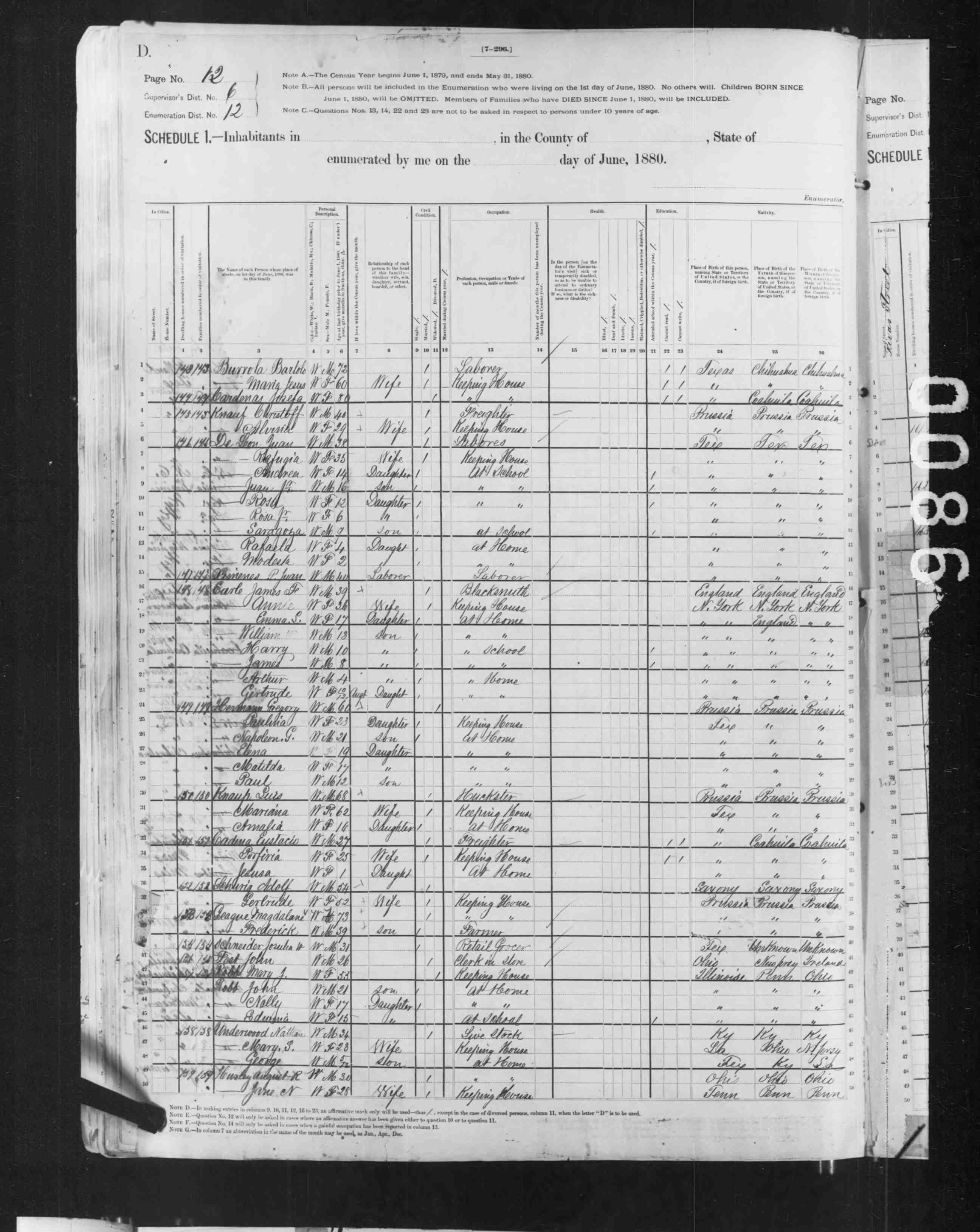 1880 Census Ref:Line 6 (Temotea not list with Family)